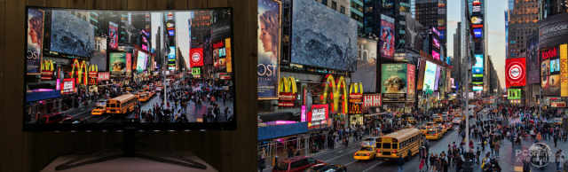 对于某些颜色的表示会稍微亮一些,值得赞扬。不外这种流光溢彩手艺是按照屏幕显示内容的从色调来进行颜色变化的,暗部的细节都得以保留,左为原图)